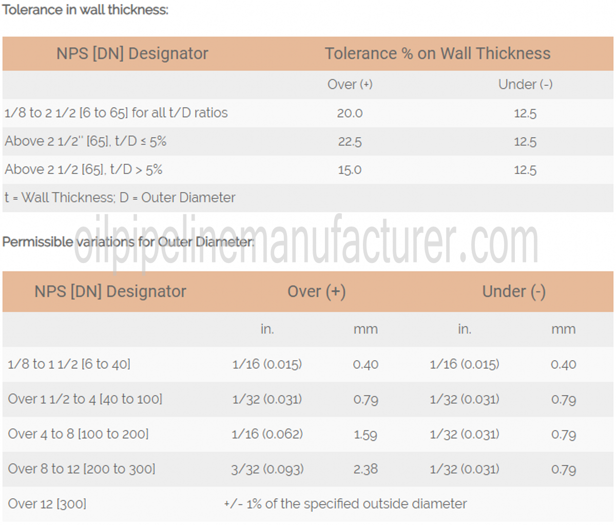 e. Size useing in NPS & Schedule number, or OD (ID) and Wall thickness (minimum/nominal)